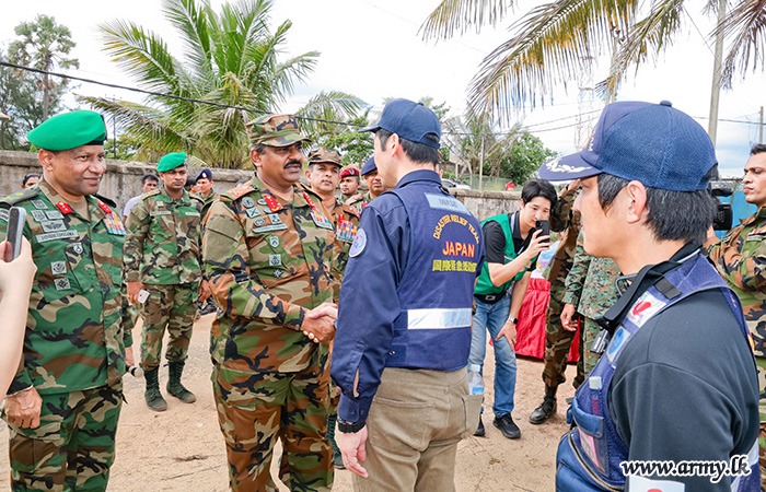 ශ්රී සුදර්ශනාරාමය විහාරස්ථාන පරිශ්රයේ පදිංචි පවුල් කිහිපයක් ද හමු වූ යුද්ධ හමුදාධිපතිතුමන් සිය සංචාරය තවදුරටත් දීර්ඝ කරමින්, ජපන් ආපදා සහන (JDR) වෛද්ය කණ්ඩායමේ සාමාජිකයින් සහ ජපන් ජාත්යන්තර සහයෝගිතා ඒජන්සියේ (JICA) නියෝජිතයින් හමුවී, මෙම අභියෝගාත්මක කාල පරිච්ඡේදයේදී ජාතිය වෙනුවෙන් ඔවුන් දැක්වූ වටිනා දායකත්වය අගය කළේය. ශ්රී ලංකාවට ඔවුන්ගේ කඩිනම් සහය සහ අඛණ්ඩ සහයෝගය සඳහා ඔහු සිය කෘතඥතාව පළ කළේය.