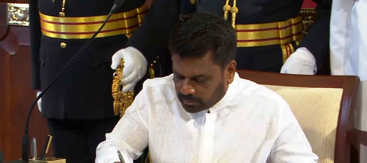 ශ්රී ලංකාවේ 9 වන විධායක ජනාධිපතිවරයා ලෙස ජාතික ජන බලවේගයේ නායක අනුර කුමාර දිසානායක මීට සුළු මොහොතකට පෙර දිවුරුම් දුන්නා.