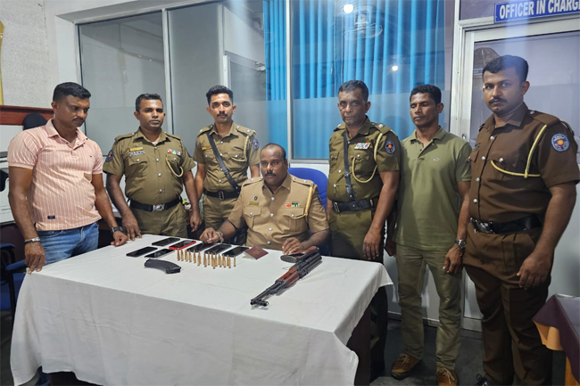 එම නිවස පරීක්ෂා කිරීමේදී එහි අල්මාරියක සඟවා තිබූ T-56 වර්ගයේ ගිනි අවියක්, එම මැගසිනයක් සහ පතුරම් 30 ක්, මෙම වෙඩි තැබීම් සඳහා දුරකථන සන්නිවේදන සඳහා භාවිතා කළ ජංගම දුරකථන 07ක් ද සොයාගැනීමට හැකිව තිබේ.