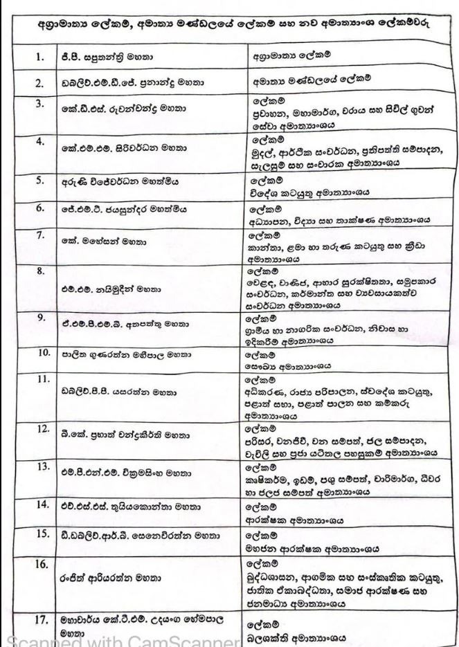 අග්රාමාත්ය ලේකම්, අමාත්ය මණ්ඩල ලේකම් ඇතුළු නව අමාත්යාංශ ලේකම්වරුන් පත්කර ඇත.