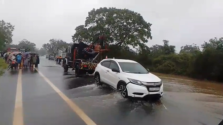 ඒ අනුව, ගංවතුරේ සිරවී තිබූ මෝටර් රථය නාවික හමුදා ආපදා රථයක් මඟින් ආරක්‍ෂිතව ඉවත් කිරීම සිදුකෙරිණි.