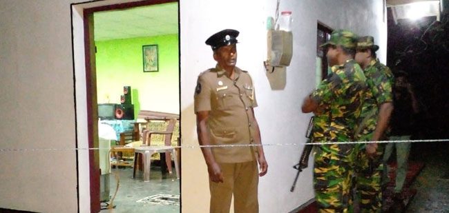 බෙලිගස්හේන පාසල පිටුපස නිවසක් ආසන්නයේ දී ත්රිරෝද රථයකින් පැමිණි පිරිසක් වෙඩිතැබීම සිදුකර පලා ගොස් ;තිබේ .