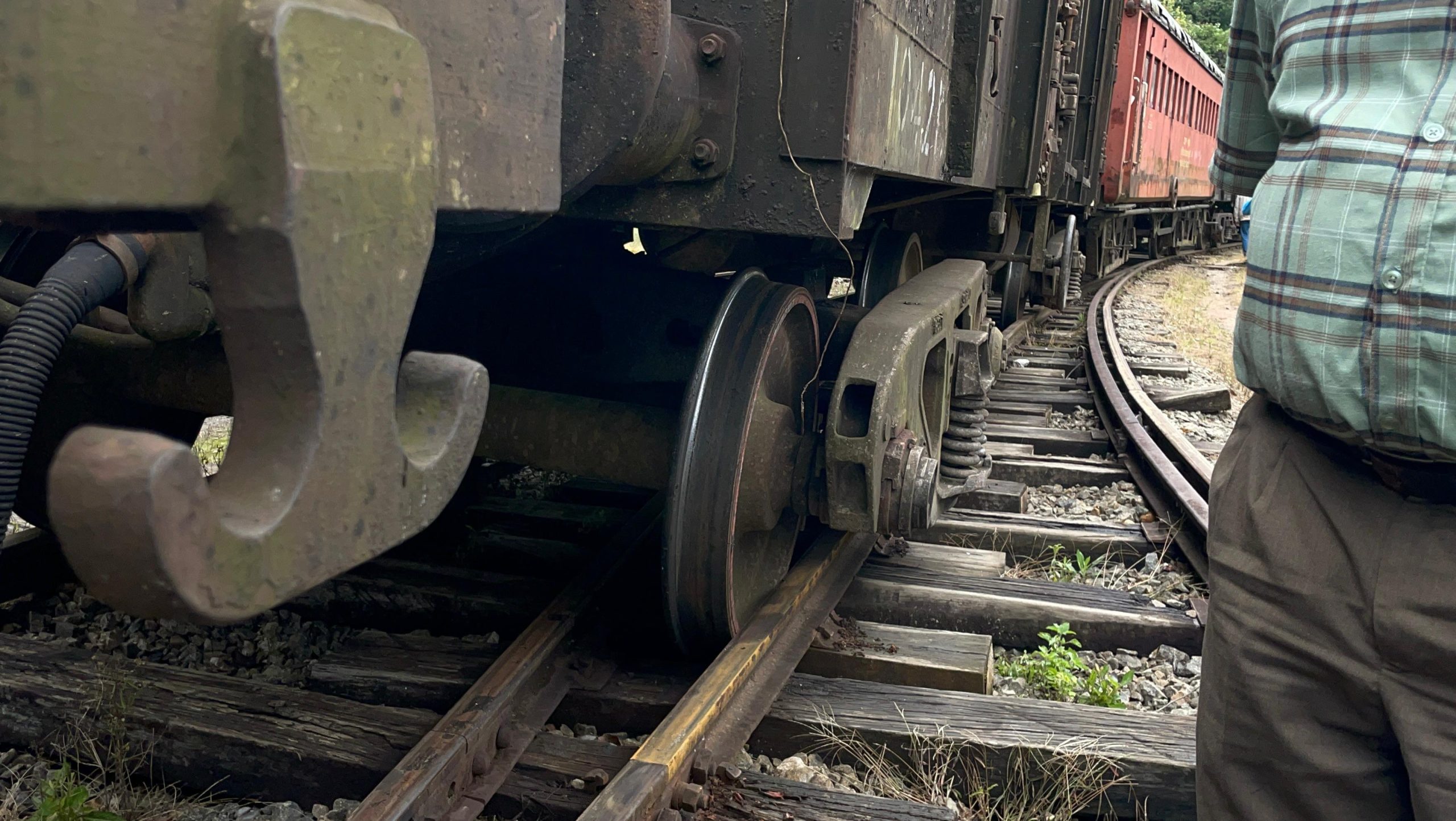 එම දුම්රියේ රෝද තුනක් මෙලෙස පිලී පැනීමකට ලක්ව ඇති අතර මේ හේතුවෙන් උඩරට මාර්ගයේ දුම්රිය ගමනාගමනයට බාධා මතුව ඇත.