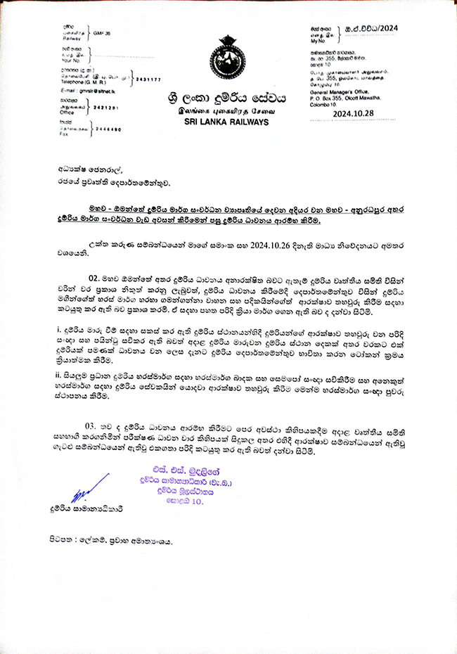 කෙසේ නමුත් දුම්රිය ධාවනයේදී දුම්රිය මගීන්ගෙත් හරස් මාර්ග හරහා ගමන් ගන්නා වාහන සහ පදිකයින්ගේත් ආරක්ෂාව සඳහා කටයුතු කර ඇති බව දුම්රිය දෙපාර්තමේන්තුව පවසයි.