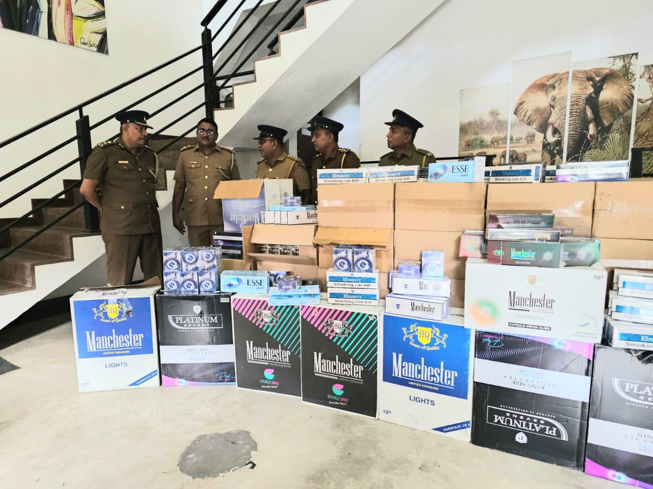 ඊයේ (17) සුරාබදු නිලධාරීන් ව්‍යාජ ගැණුම කරුවන් ලෙස ගොස් සිගරැට්කාටුන් 200 බැගින් අඩංගු කාටුන් 500 ක් එනම් සිගරැට් ලක්ෂණයක් මිලදි ගැනීමෙන් අනතුරුව එහිදී සැකකරුවන් 3 දෙනෙකු අත්අඩංගුවට ගෙන ඉන් අනතුරුව ඹවුන්ගෙන් ප්‍රශ්න කිීරීමේදී නිවසක සගවා තිබු තවත් සිගරැට් දහනම ලක්ෂ විසි දහසක් සමගින් තවත් සැකරකරුවන් දෙදෙනකු අත්අඩංගුවට ගත් බවද කොළඹ සුරාබදු විශේෂ මෙහෙයුම් ඒකකයේ ස්ථානාධිපති , ප්‍රධාන සුරාබදු පරීක්ෂක නිරෝෂ් ජයකොඩි මහතා පැවසුවේය.