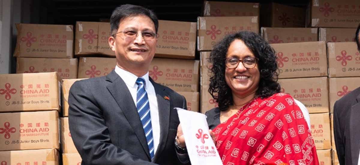 චීන රජය විසින් ශ්රී ලංකාවට නොමිලේ ලබාදුන් පාසල් නිල ඇඳුම් රෙදි අද (10) නිල වශයෙන් මෙරටට භාරදීම සිදුකෙරිණ