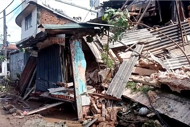 එම බැකෝ යන්ත්රය සහ පස් පිරවූ ලොරි රථය ඉන් පිටත්ව යෑමත් සමගම මෙම ගොඩනැගිලි එකවරම කඩාවැටී ඇත.