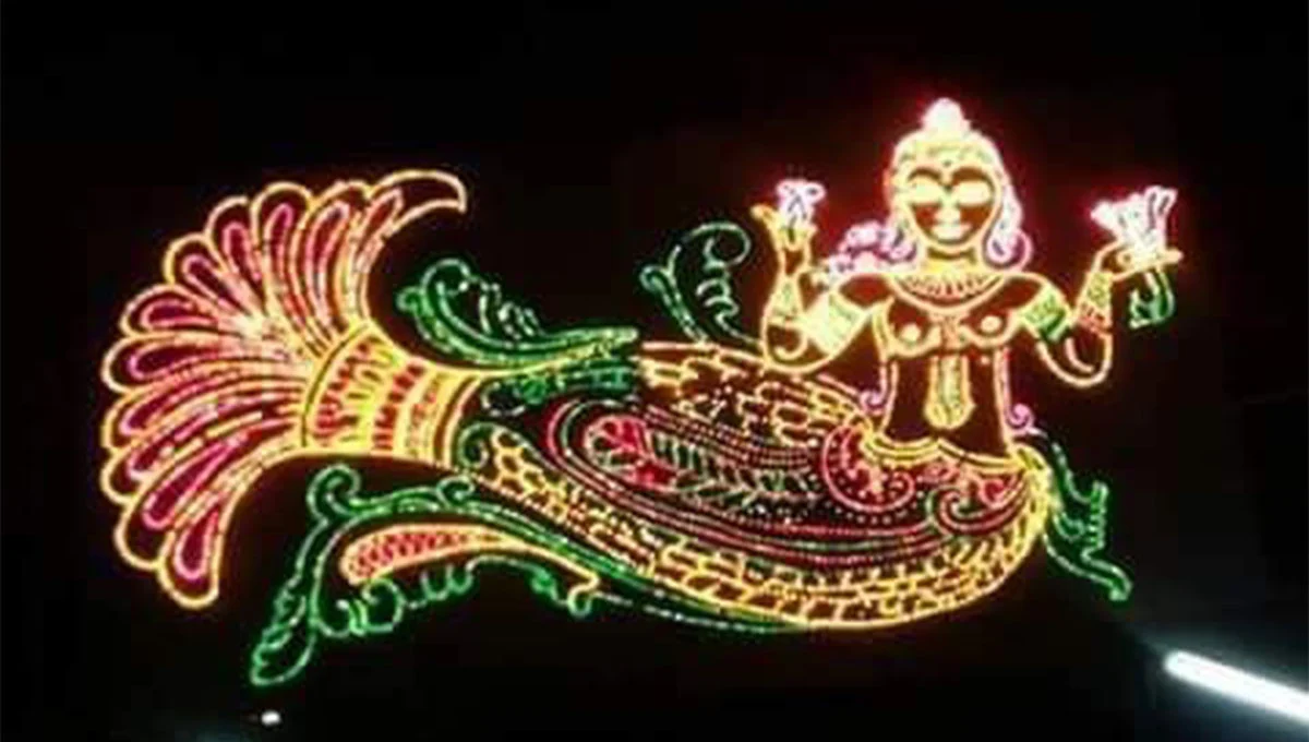 මේ නිසාම හින්දු ජනතාව අතර වඩාත්ම ප්රසිද්ධ වූ දෙවිවරුන් කිහිපදෙනෙකුගේ රූපයන් විදහාදක්වමින් මෙලෙස විදුලි බුබුලු දහස් ගණණක එකතුවෙන් මෙම දේව රූප ආලෝකමත් කිරීම බොහෝ දෙනෙකුගේ කතාබහට ලක්විය.