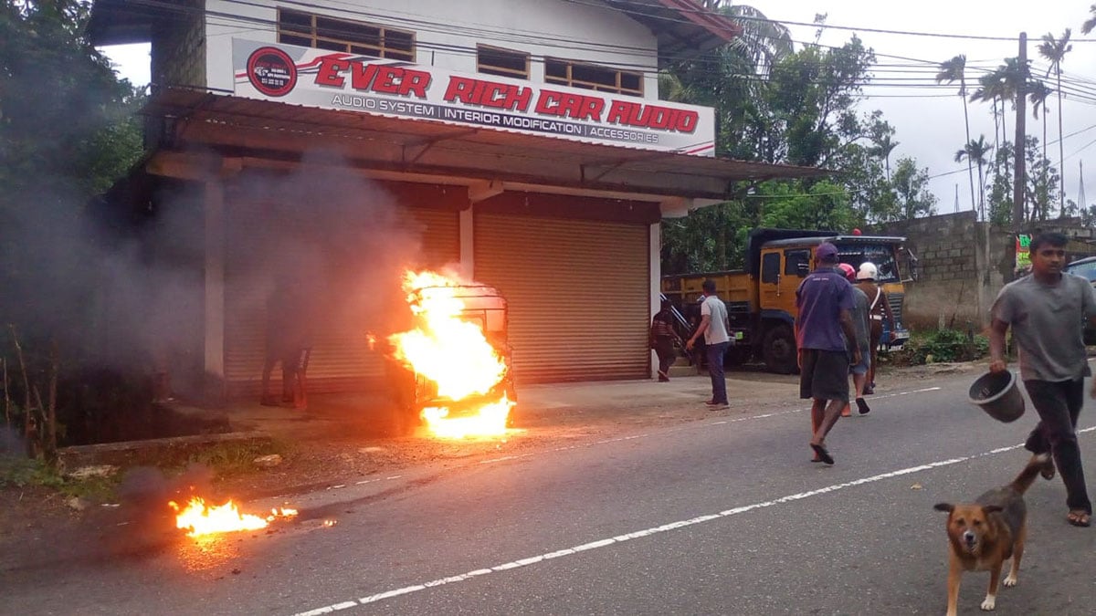 ධාවනය වෙමින් තිබූ ත්රීරෝද රථයේ හදිසියේ ඇතිවූ කාර්මික දෝෂයක් රියදුරා විසින් පරික්ෂා කිරිමට යෑමේදි එක්වරම ගින්න හට ගෙන ඇති බවයි නාවලපිටිය පොලිසිය කියා සිටියේ.