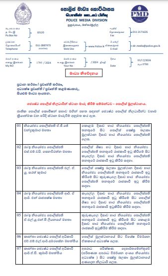 ජාතික පොලිස් කොමිෂන් සභාව මගින් වහාම ක්රියාත්මක වන පරිදි නියෝජ්ය පොලිස්පතිවරුන් 5 දෙනෙකු, ජ්යෙෂ්ඨ පොලිස් අධිකාරීවරුන් 35 දෙනෙකුට ස්ථාන මාරුවීම් ලබාදී තිබේ.