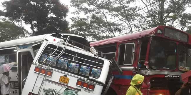 පෞද්ගලික බස් රථයක් හා ලංගම බස්රථයෙක් මෙසේ එකිනෙක ගැටීමෙන් සිදුවු අනතුරින් සිව් දෙනෙකු තුවාල ලබා ඇතැයිද වාර්තාවෙයි.