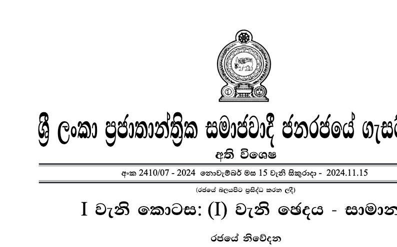 අදාළ ගැසට් නිවේදනය පහතින්.