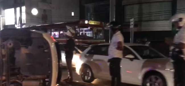 නුගේගොඩ ගුවන් පාලම ආසන්නයේ දීඅද (06) රාත්රී 7.45ට පමණ මෝටර් රථයක් මාර්ගයේ පෙරළී ගොස් තිබේ.