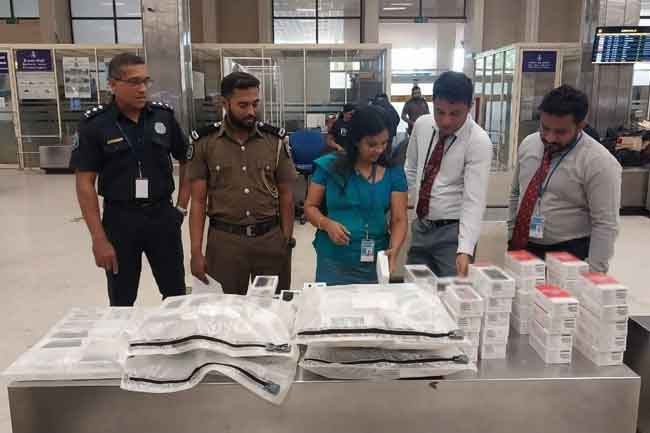 රුපියල් කෝටි දෙකක පමණ වටිනාකමකින් යුත් නවීන ජංගම දුරකථන සහ කරදමුංගු තොගයක් නීතිවිරෝධී ලෙස මෙරටට රැගෙන ආ ශ්රී ලාංකික අද (28) උදෑසන කටුනායක ගුවන්තොටුපොළේ හරිත මාවත ඔස්සේ එම භාණ්ඩ පිටතට රැගෙන යාමට තැත් කිරීමේදී රේගු නිලධාරීන් සැකකරු අත්අඩංගුවට ගෙන ඇත.