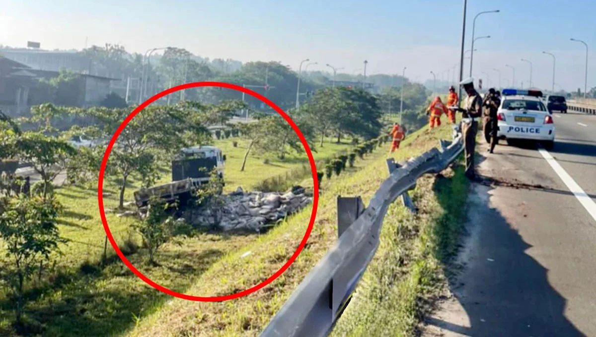 දක්ෂින අධිවේගී මාර්ගයේ කහතුඩුව පිවිසුම ආසන්නයේදී ලොරි රථයක් මාර්ගයෙන් ඉවතට පෙරලී යාමෙන් අනතුරක් සිදුව ඇත.