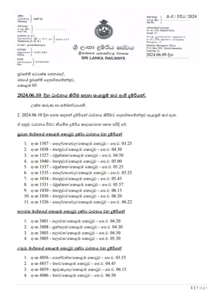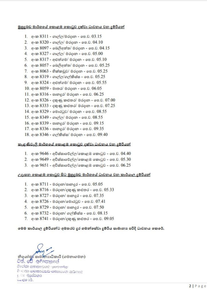 එමේ පැවතියත් අද දිනයේ මේ අයුරින් දුම්රිය ධාවනය කෙරේ.