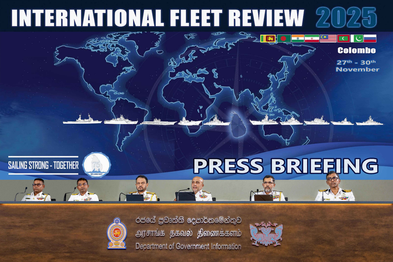 “Sailing Strong Together” යන තේමාව පෙරදැරිව පවත්වනු ලබන “ජාත්‍යන්තර යුද නෞකා නිරීක්ෂණය – 2025” පිලිබඳ මාධ්‍ය දැනුවත් කිරීමේ සාකච්ඡාවක් 2025 නොවැම්බර් මස 24 වැනි දින නාවික හමුදාධිපති වයිස් අද්මිරාල් කාන්චන බානගොඩගේ ප්‍රධානත්වයෙන්, රජයේ ප්‍රවෘත්ති දෙපාර්තමේන්තු පරිශ්‍රයේදී පැවැත්විණි.