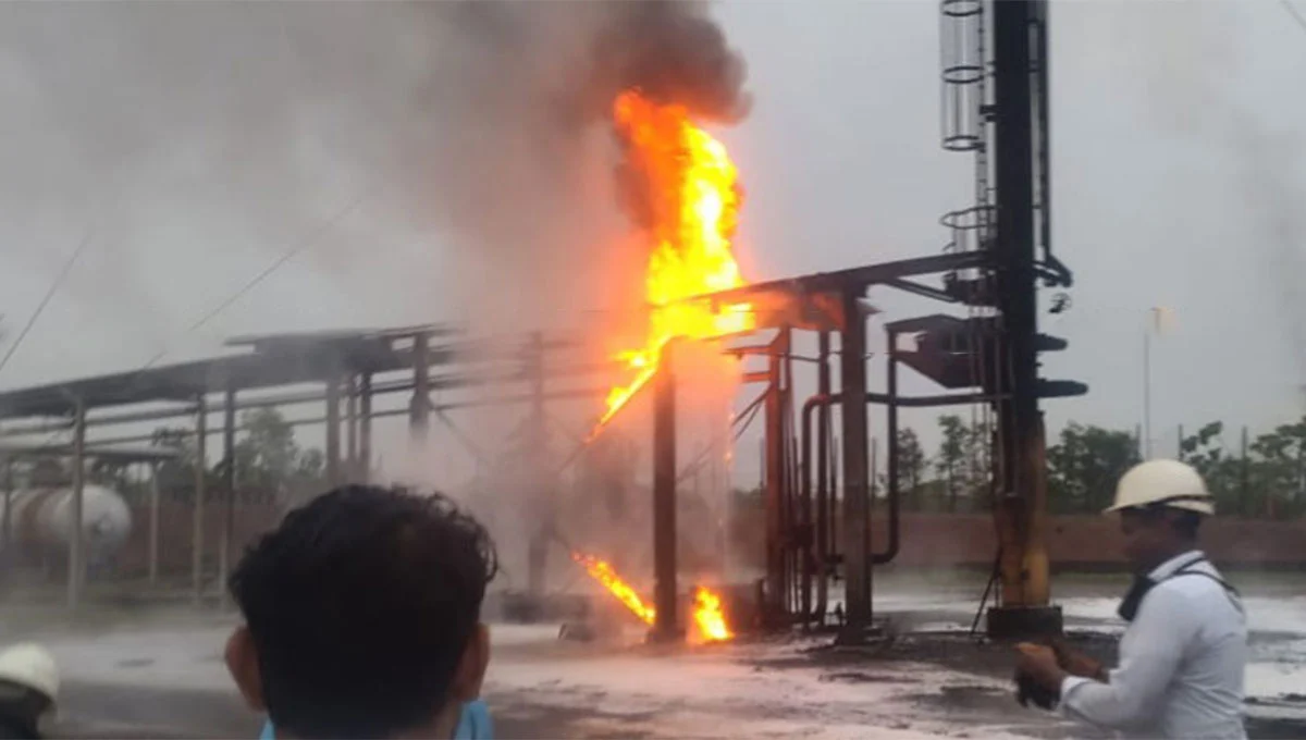 සපුගස්කන්ද තෙල් පිරිපහදුවේ ගෑස් සපයන නලයකට ඊයේ පස්වරුවේ අකුණක් වැදී ගින්නක් හටගෙන තිබේ.