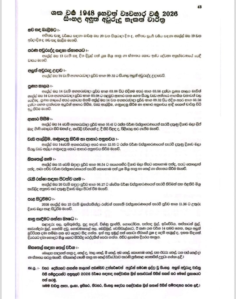 ජනාධිපති උත්තම සේවා පදක්කම් ලාභී ශ්රී විද්යාකීර්ති ජෝතිස්ය පර්යේෂණ ආයතනයේ අධිපති ගාමිණී ඩයස් යාපා මහතා විසින් සකස් කරන ලදී