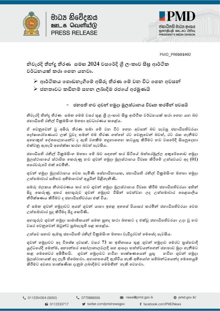 නිවැරදි තීන්දු තීරණ සමඟ මෙම වසර තුළ ශ්රී ලංකාව ශීඝ්ර ආර්ථික වර්ධනයක් කරා ගෙන යන බව ජනාධිපති රනිල් වික්රමසිංහ පවසයි.